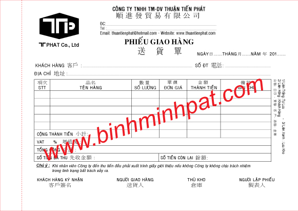Đơn vị Bình Minh Pat là đơn vị in ấn hóa đơn trên địa bàn TPHCM trong nhiều năm nay. Chúng tôi cam kết in hóa đơn giá cả thấp nhất tại TPHCM