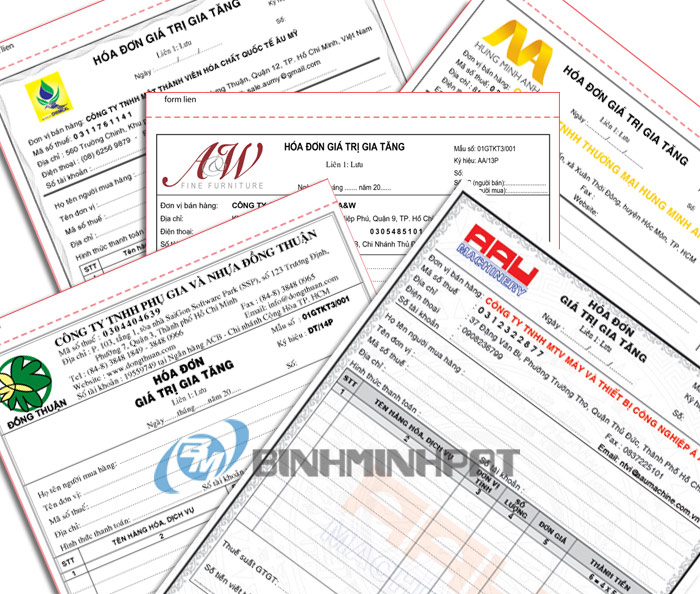 Bước 2: Gửi thông tin cần in hóa đơn cho chúng tôi bao gồm: logo, ĐT, Fax, TK ngân hàng(nếu có), tên cty, địa chỉ, MST(là thông tin bắt buộc trên giấy phép đăng ký kinh doanh), tên và số ĐT của người đặt in hóa đơn qua email info@binhminhpat.com. Chúng tôi sẽ thiết kế mẫu hóa đơn và gửi lại cho Quý khách duyệt. (Tiêu đề email nhớ ghi Tên Công Ty Đặt In Hóa Đơn).